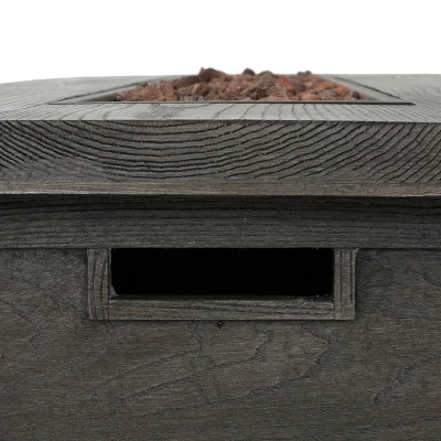 LIGHTWEIGHT CONCRETE: This rectangular fire pit is constructed with lightweight concrete featuring a wood-like aesthetic. This provides a highly durable structure that can hold a substantial amount of weight.