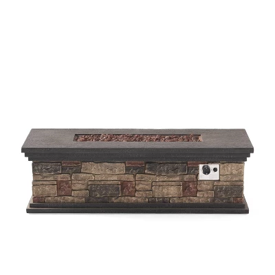 LIGHTWEIGHT CONCRETE: This rectangular fire pit is constructed with lightweight concrete for a faux stone look. This provides a highly durable structure that can hold a substantial amount of weight.