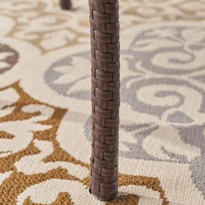 What’s stopping you from taking your next meal under the stars? With a charming slat panel tabletop and stackable wicker seating, our five-piece dining set combines function and style to create the perfect outdoor lounge area. Featuring a gracefully curved table made from durable acacia wood, this set is made for impressive luxury while offering enough space for even the most extravagant meal.