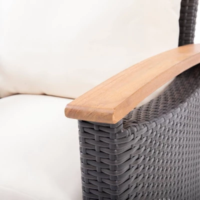 Every evening can be enjoyed in delightful conversation with your family and friends. With our stunning chat set, you can bring your outdoor space together with an effortlessly stylish flair while settling into the comfort of your own backyard. Our set is crafted to superior excellence that maintains a minimalistic yet durable structure. Featuring a homey wicker finish and handsome wood accents, this set offers a transitional twist to a classic look, making this ideal for any style of outdoor lounging.
