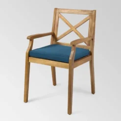 Kyoto 3pc Outdoor Acacia Wood Chaise Lounge Set With Cushions – Teak/Blue – Christopher Knight Home