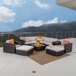 This Christopher Knight Home Santa Rosa 10pc Wicker Sectional Sofa Set is great for any patio or backyard. Complete with a sectional sofa and table along with a club chair with ottoman, this set does it all. Perfect for all of your outdoor hosting needs, this set features top quality wicker and an aluminum frame with water resistant cushions and a tempered glass top for the table for an extra clean look. Enjoy hosting again this summer with this perfect Christopher Knight Home Santa Rosa 10pc Wicker Sectional Sofa Set.