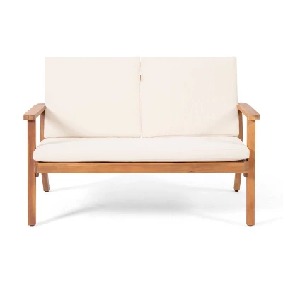 Host the perfect get-together from the comfort of your own backyard or patio space with an intimate conversation set. With water-resistant cushions and acacia wood frames, this set brings a refreshing atmosphere to any backyard or patio space. This set includes two club chairs, one loveseat, and one coffee table that features classic slatted paneling for a seamless design. From weekend afternoons on your patio to poolside lounging, our chat set is sure to keep your outdoor space in style.