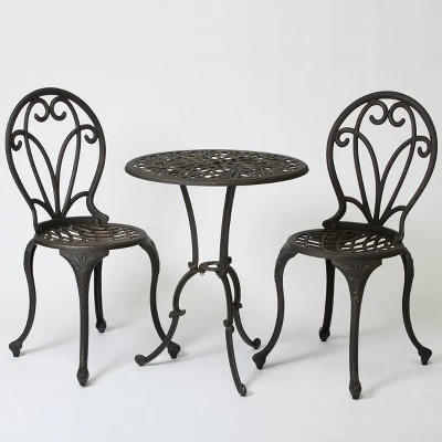 Create an intimate setting in your outdoor dining area with this Thomas 3 pc Cast Aluminum Patio Bistro Set from Christopher Knight Home. This elegant cast aluminum dining set is just the right size for enjoying a quaint breakfast or lunch with a loved one. Featuring intricate metal detail, this outdoor table offers European charm. Use this Christopher Knight Home Thomas 3 pc Cast Aluminum Patio Bistro Set on your patio, in your backyard or even in your garden for a unique dining experience.